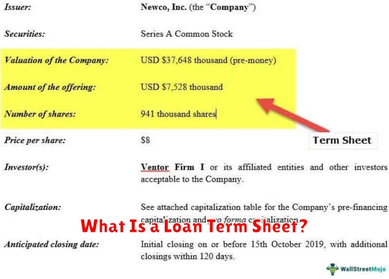 A loan term sheet is a non-binding document outlining the key terms and conditions of a proposed loan. It’s essentially a summary of the agreement between a lender and a borrower, serving as a starting point for negotiations before a formal loan agreement is drafted.