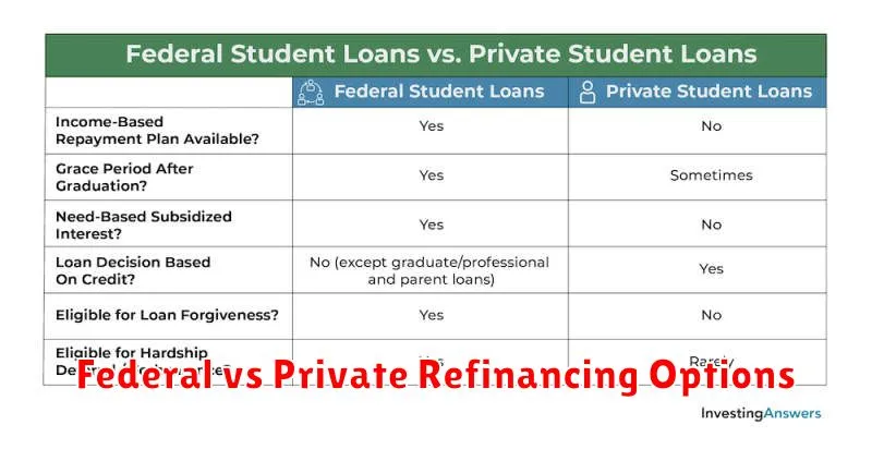 Federal refinancing, offered through the federal government, consolidates multiple federal student loans into a single new loan with a potentially lower interest rate. A significant advantage is the potential for income-driven repayment plans and federal protections, such as forbearance and deferment, in case of financial hardship. However, federal refinancing is currently limited in its availability, and you may not qualify if your loans aren’t already federal.